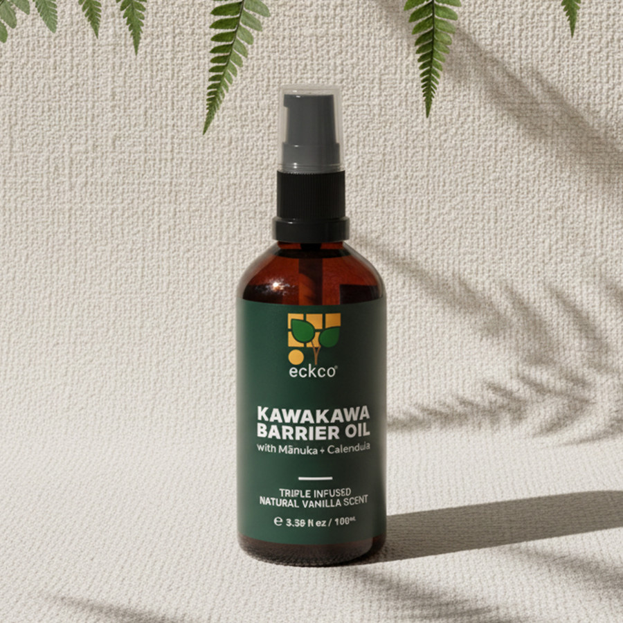 At its heart is a Triple Infusion: Wild-harvested Kawakawa leaves, Mānuka leaves, and Calendula petals, slow-steeped to extract their botanical properties. This Barrier Support Body Oil is our “liquid gold” standard for daily skin resilience. Designed to cover large areas with ease, it delivers the same botanical power as our intensive Barrier Balm but in a silky, absorbable form.